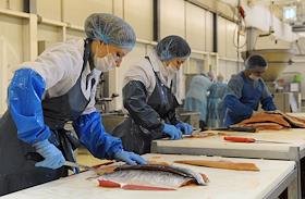 Рыбообрабатывающее предприятие "Русская рыбная фактория" (РРФ). Цех разделки свежей рыбы. Филе…