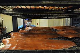 Рыбообрабатывающее предприятие "Русская рыбная фактория" (РРФ). Цех горячего копчения рыбы.