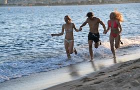 Жанровая фотография. Виды Канн. Молодые люди бегущие по пляжу.