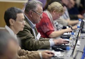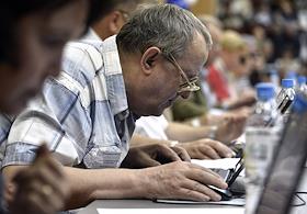 Участники чемпионата по компьютерному многоборью среди граждан старшего поколения, в гостинице…
