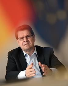 Заместитель председателя партии СДПГ (ФРГ) Ральф Штегнер во время интервью.