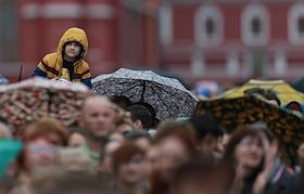 Зрители на концерте по случаю Дня славянской письменности и культуры на Красной площади.