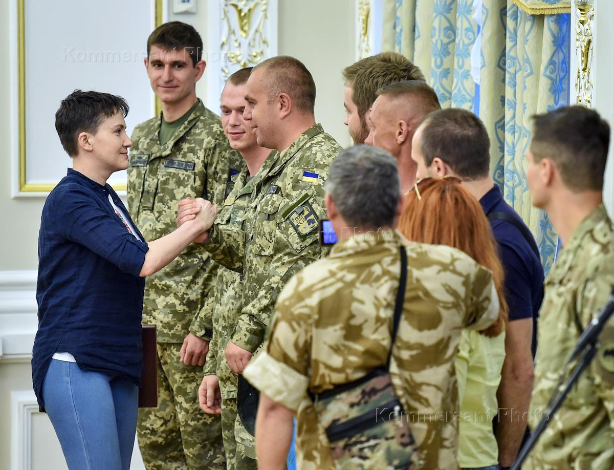 Президент Украина Петр Порошенко (второй слева) и Украинская военнослужащая Надежда Савченко (слева)…
