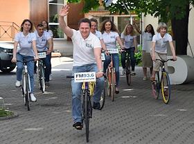 Участники московского велопарада от радиостанции КоммерсантЪ FM во дворе редакции