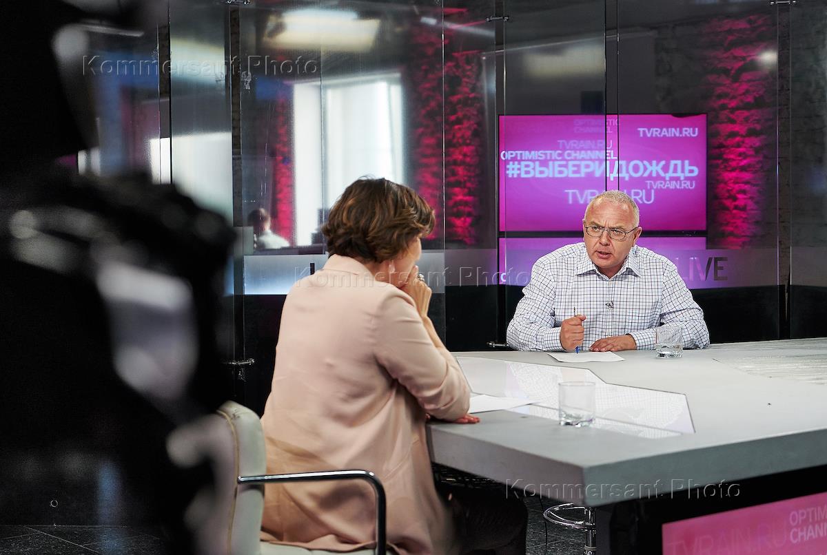 Телеведущий Павел Лобков в студии телеканала "Дождь".