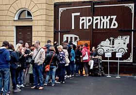 Ежегодная "Ночь музеев 2016". Очередь на вход в гараж киностудии "Ленфильм", где представлены…