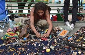 Жанровая фотография. Виды Каракаса. Мужчина торгует самодельной бижутерией на асфальте.