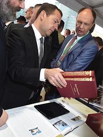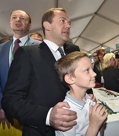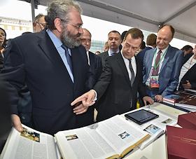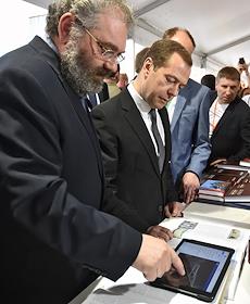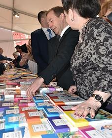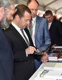 Председатель правительства России Дмитрий Медведев на открытии книжной ярмарки на Красной площади.