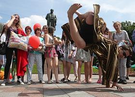 Участники флешмоба в пижамах в центре Киева.