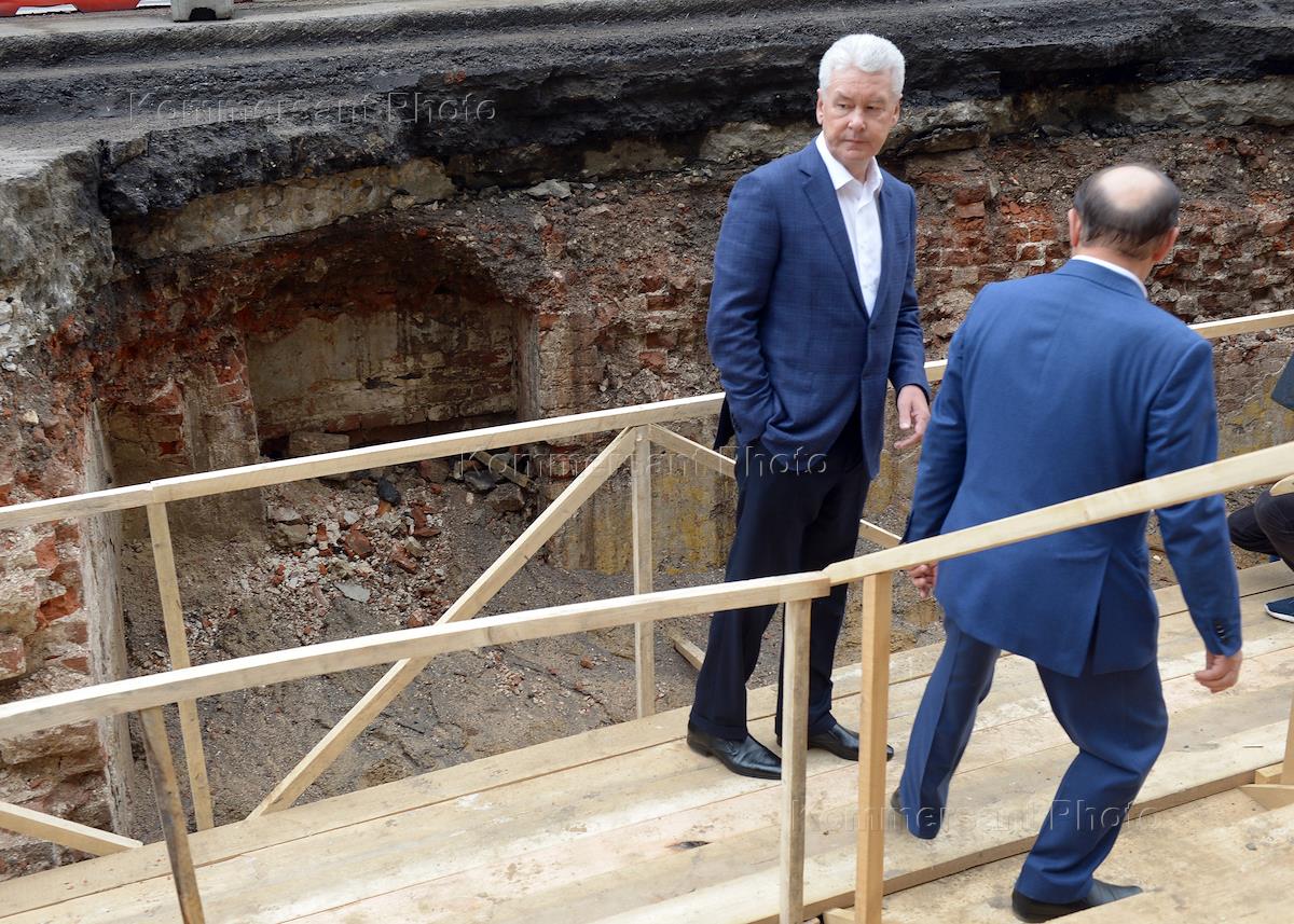 Мэр Москвы Сергей Собянин во время осмотра выполнения работ по благоустройству Тверской улицы.