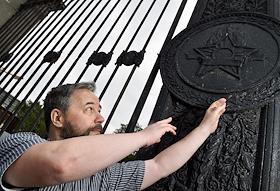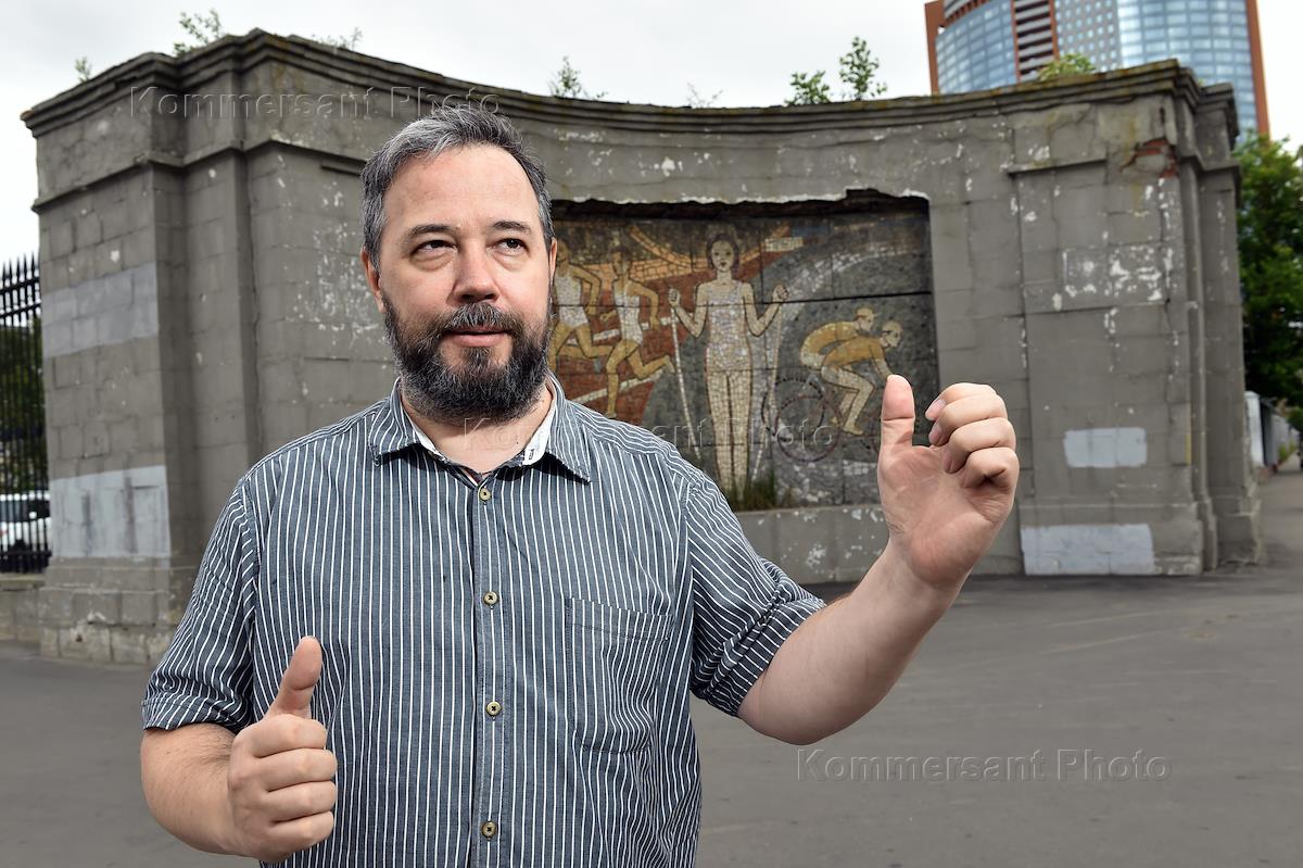 Руководитель муниципального образования "Беговое" в Москве Виктор Курасов у стадиона "Юных пионеров".