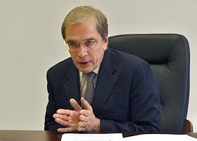 Глава Евразийского банка развития (ЕАБР) Дмитрий Панкин во время интервью.