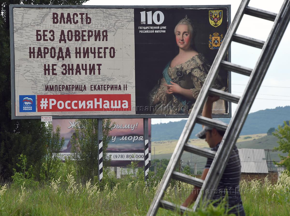 Жанровая фотография. Плакат посвященый первым выборам в Государственную думу в Крыму.