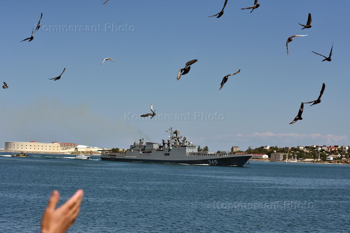 Cторожевой корабль "Адмирал Григорович" во время прибытия в бухту Севастополя.