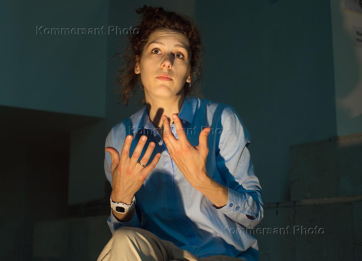 Актриса Ирина Горбачева во время интервью в Театре "Мастерская Петра Фоменко".