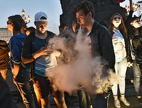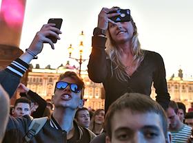 Выпускники во время праздника выпускников "Алые паруса" в Санкт-Петербурге.