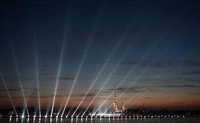 Праздник выпускников школ Санкт-Петербурга "Алые паруса - 2016" в акватории реки Невы. Световое шоу…