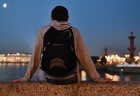 Праздник выпускников "Алые паруса" прошел в Санкт-Петербурге. Жанровая фотография. Молодой человек…