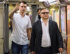 Продюсер, актер Игорь Угольников (справа) на церемонии запуска поезда с тематическим оформлением…