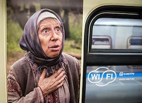 Кадр из фильма с участием актрисы Инны Чуриковой в поезде с тематическим оформлением "Легенды кино",…