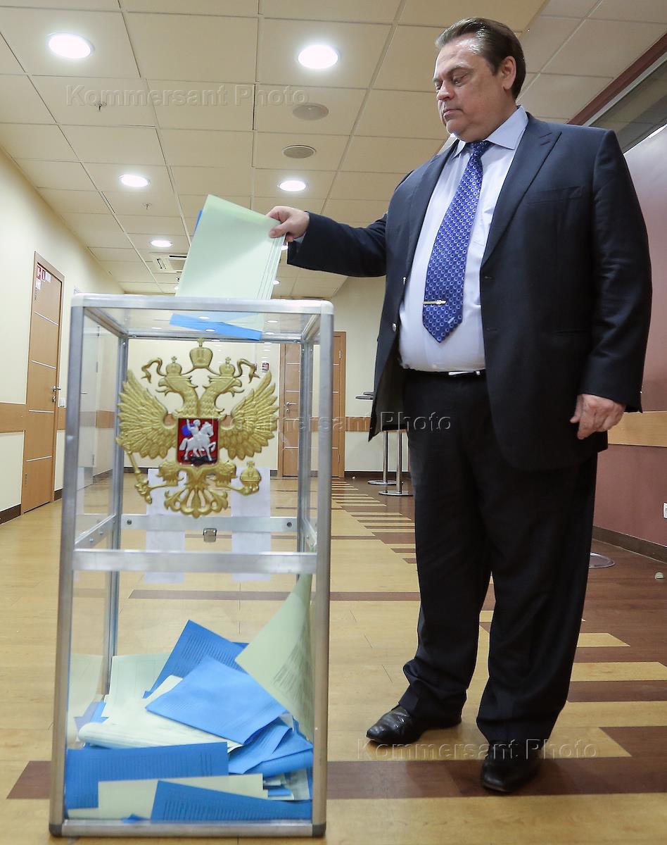 Член партии "Патриоты России" во время голосования на съезде партии "Патриоты России" в гостинце…
