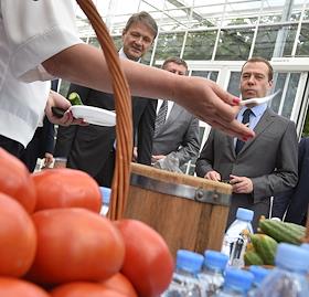 Председатель правительства России Дмитрий Медведев (справа), министр сельского хозяйства России…