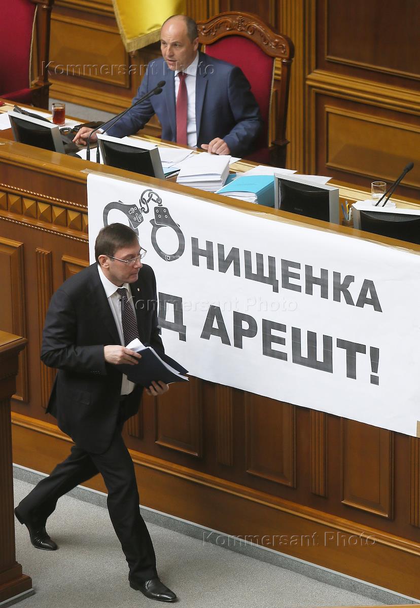 Заседание Верховной Рады Украины (ВРУ). Генеральный прокурор Украины Юрий Луценко (слева) на…