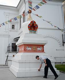 «Каноническая» буддийская ступа, стоящая во дворе Международного центра Рерихов (МЦР) на территории усадьбы Лопухиных.