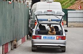 Жанровая фотография. Овчарка в багажнике автомобиля полиции.