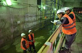 Мэр Москвы Сергей Собянин осматривает строительство станции метро "Минская".