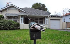 Вид города Коттесло, расположенного на берегу Индийского океана. Газеты в почтовом ящике.