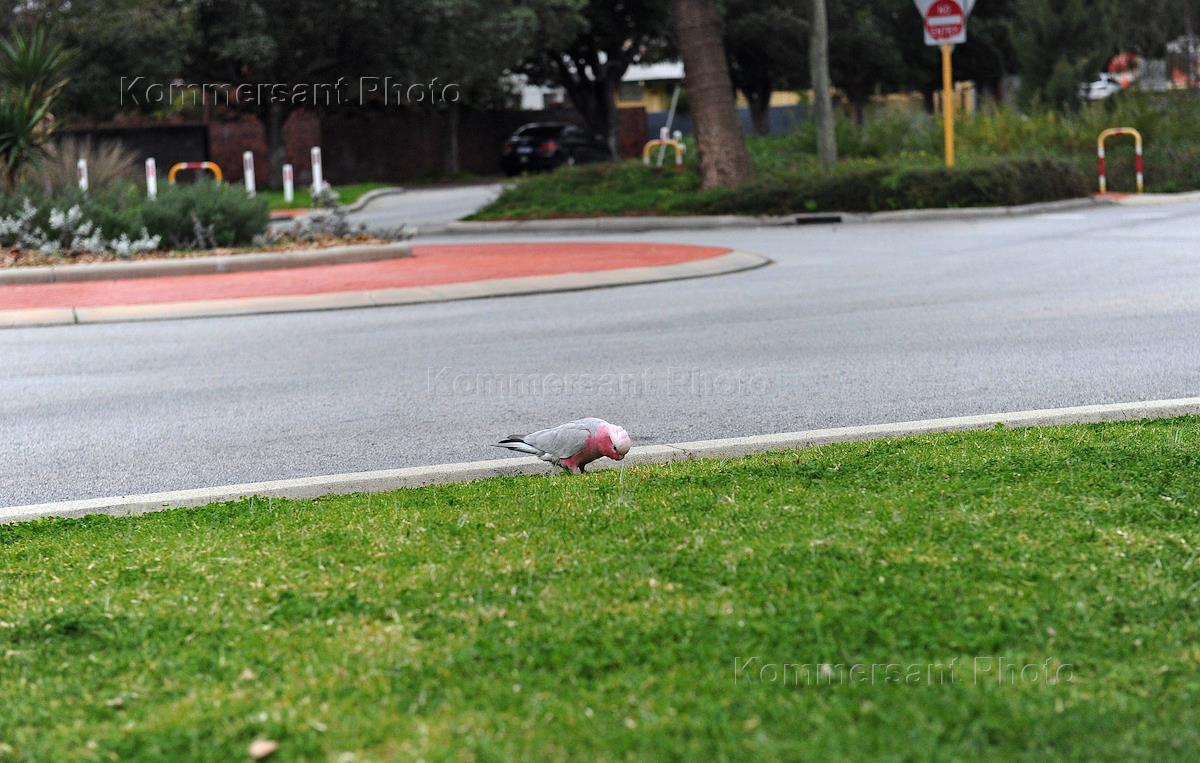 Вид города Коттесло, расположенного на берегу Индийского океана. Птица на газоне.
