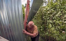 Последствия урагана в Рузском районе Московской области. Семья идет мимо поваленных деревьев.