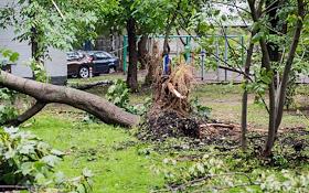 Последствия грозы и сильного ветра в ночь с 13 на 14 июля 2016 года. Поваленные деревья в районе…