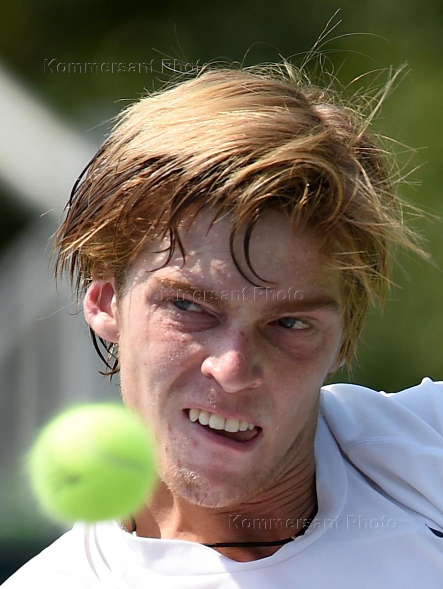 Кубок Дэвиса. Матч между сборными России и Нидерландов. Российский теннисист Андрей Рублев в матче…