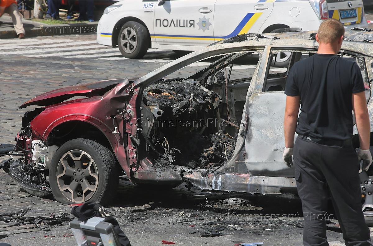 машина взорвалась на углу улицы Богдана Хмельницкого и Ивана Франко напротив ресторана "Макдональдс".