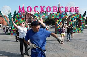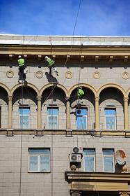 Виды Москвы. Жанровая фотография. Рабочие во время ремонта здания.
