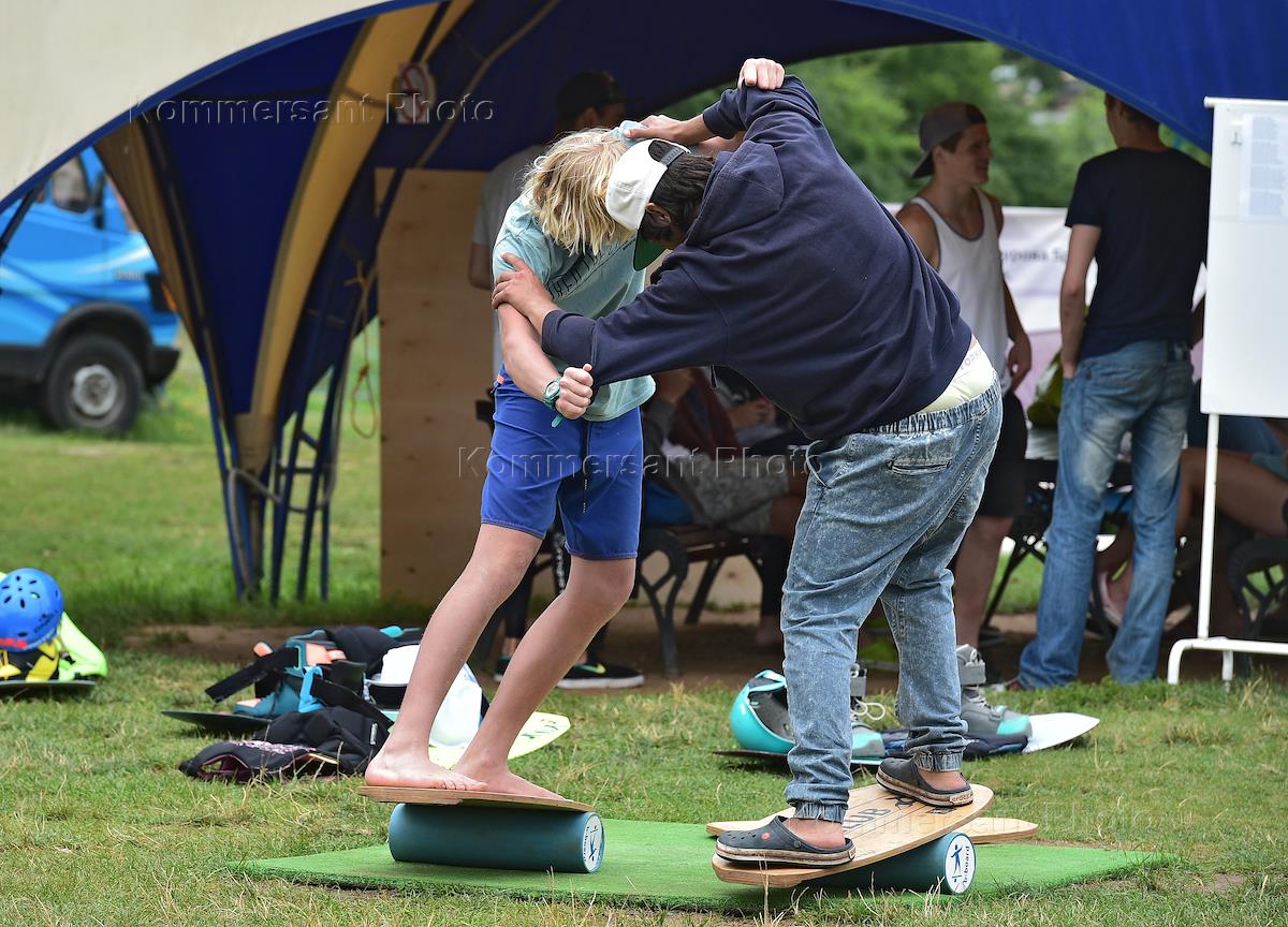 Воднолыжный клуб Натальи Румянцевой в Малом Строгинском заливе. Обучение катанию на вейборде.