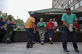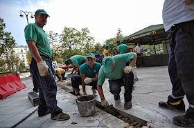 Рабочие во время строительства ливневки на Пушкинской площади.