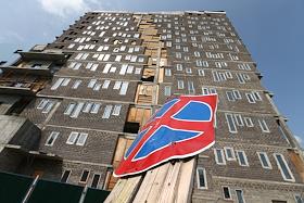 Строительство торгово-офисного центра Счастье в районе площади им. С. М. Серышева.