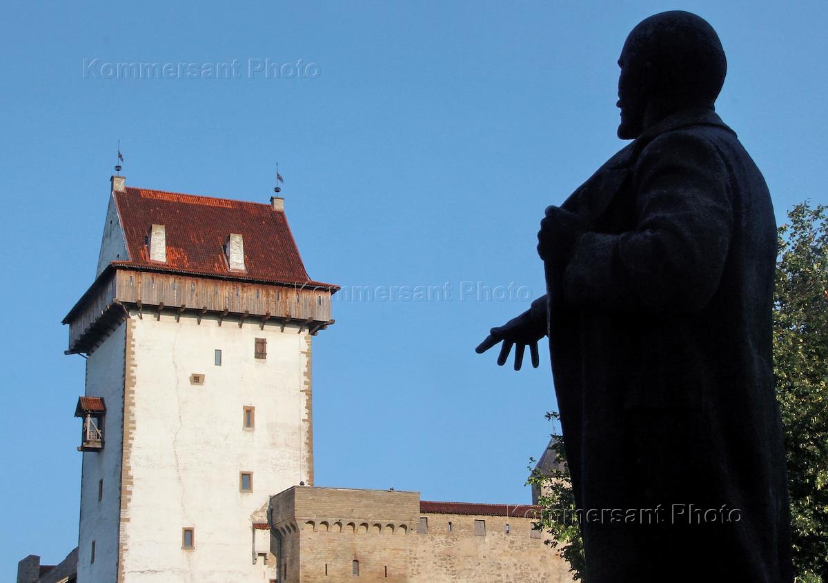 Виды Нарвы. Двор Нарвского замка. Пямятник Ленину, перенесенные в замок как исторический символ…