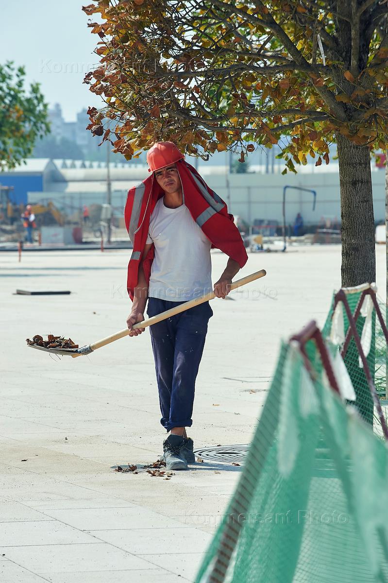 Рабочие на завершающей стадии строительства и благоустройства нового стадиона ФК "Краснодар".