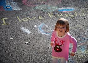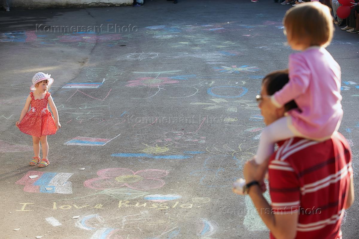 Жанровая фотография. Виды Ростова-на-Дону. Рисунок мелками на асфальте и надпись I love Russia.