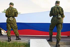 Жанровая фотография. Виды Ростова-на-Дону. Военнослужащие с флагом России во время праздничных…