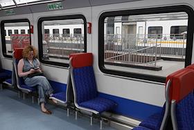 Жанровая фотография. Новые пригородные электропоезда, которые начали ходить с Киевского вокзала.
