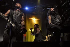 Американская группа Ministry во время выступления на своем сольном концерте в клубе YOTASPACE.