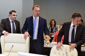 Экономика и бизнес Заседание Совета Евразийской экономической комиссии. Участвуют первый заместитель председателя правительства РФ Игорь Шувалов, вице-премьер, министр международной экономической интеграции и реформ Армении Ваче Габриелян, первый заместитель премьер-министра Белоруссии Василий Матюшевский, первый заместитель премьер-министра Казахстана Бакытжан Сагинтаев, вице-премьер Киргизии Олег Панкратов, председатель Коллегии Евразийской экономической комиссии Тигран Саркисян.