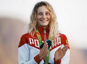 Спорт XXXI летние Олимпийские игры в Рио-де-Жанейро 2016. Соревнования в парусном спорте. RS:X. Финалы. Член олимпийской сборной России по парусному спорту Стефания Елфутина во время соренований. Соревнования среди мужчин по легкой атлетике. Финальный забег на 100 м. Член олимпийской сборной команды Ямайки по легкой атлетике Усэйн Болт во время соревнований.