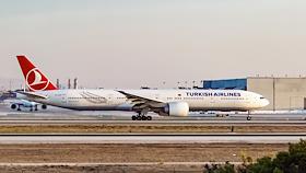 Жанровая фотография. Международный аэропорт Лос-Анджелеса. Самолет авиакомпании Turkish airlines.