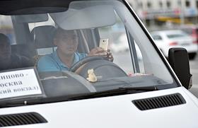 Жанровая фотография. Водитель маршрутного такси в кабине автомобиля на площади у Киевского вокзала.